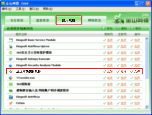 (2)、點擊防火墻選項卡中的應用規則,將廚衛吊頂編輯軟件對應的選項,全部點選為允許即可