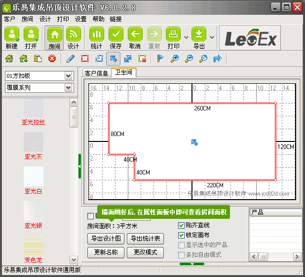 墻面繪制完成后,在屬性面板中,即可查看房間大小,如下圖: